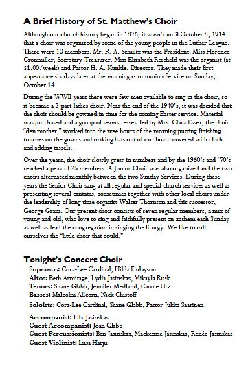 In response to God's love, St. Matthew's is a faith community welcoming all to grow in faith, to worship Christ and to reach out to everyone