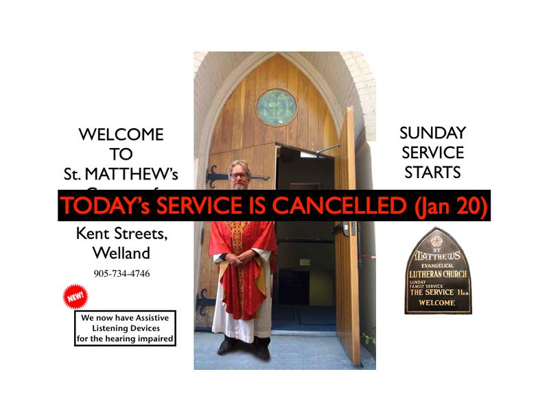 Today’s Service is Cancelled – Jan 20/19