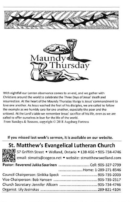Maundy Thursday Service (video) – April 18/19