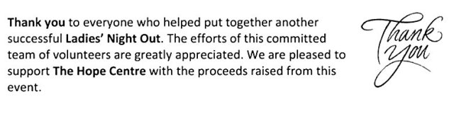 I very much enjoyed ladies night out, good food , friends and wine Thank You Gentleman