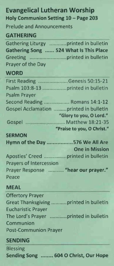 15th Sunday After Pentecost Service Video – September 13, 2020