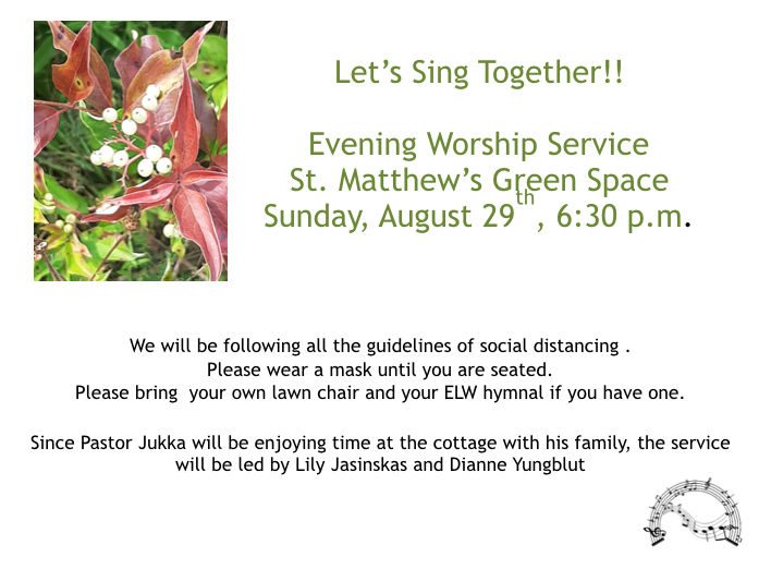 In response to God's love, St. Matthew's is a faith community welcoming all to grow in faith, to worship Christ and to reach out to everyone