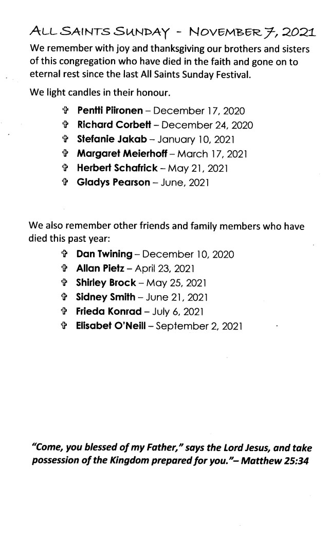 A thank you letter from Community Christmas Toys, for the Gift cards given to them by St.Matthew’s Lutheran Women