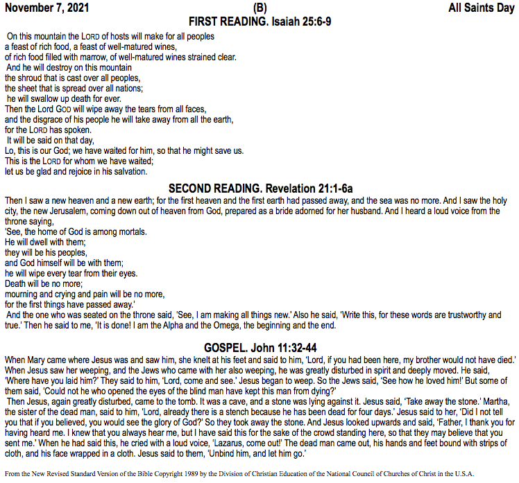 All Saints’ Sunday – November 7, 2021