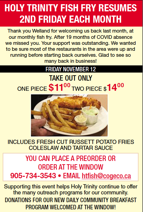 FYI – Holy Trinity Monthly Fish Fry Resumes – November 12th