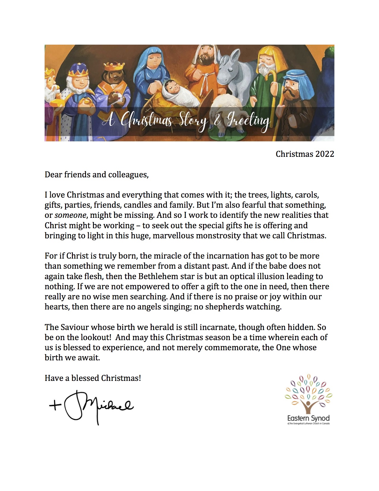 A Christmas Story and Greeting Video (closed caption available) – Eastern Synod