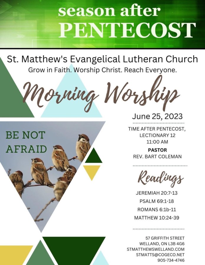 In response to God's love, St. Matthew's is a faith community welcoming all to grow in faith, to worship Christ and to reach out to everyone