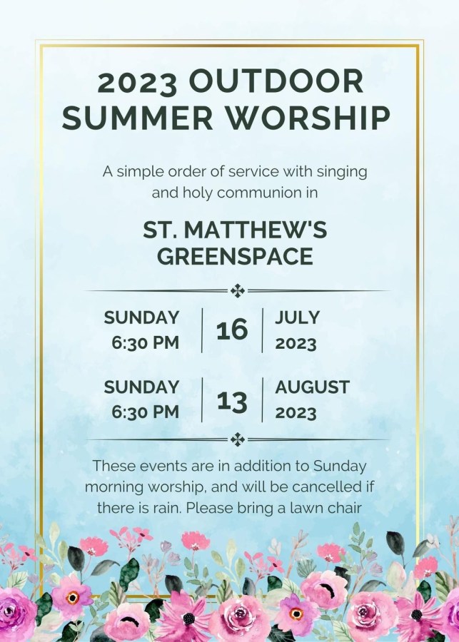 In response to God's love, St. Matthew's is a faith community welcoming all to grow in faith, to worship Christ and to reach out to everyone