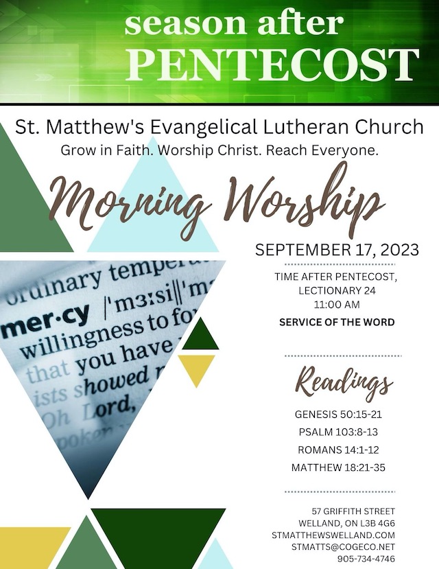 In response to God's love, St. Matthew's is a faith community welcoming all to grow in faith, to worship Christ and to reach out to everyone