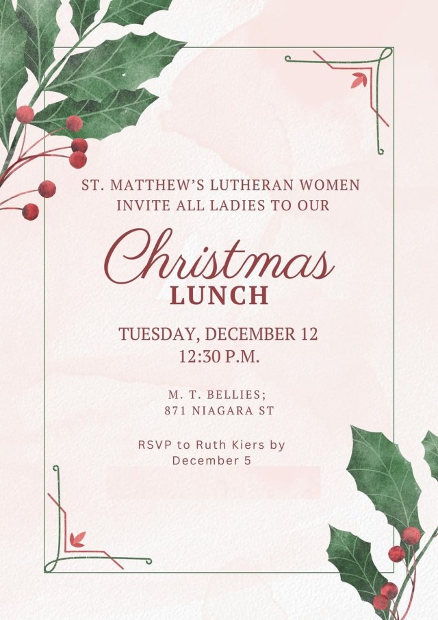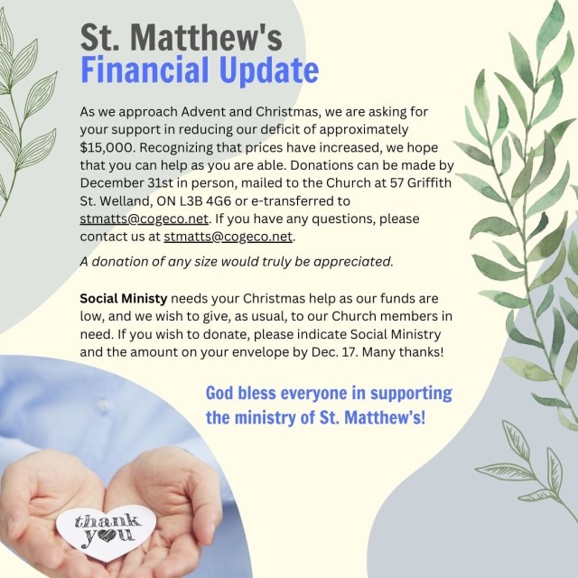 A thank you letter from Community Christmas Toys, for the Gift cards given to them by St.Matthew’s Lutheran Women