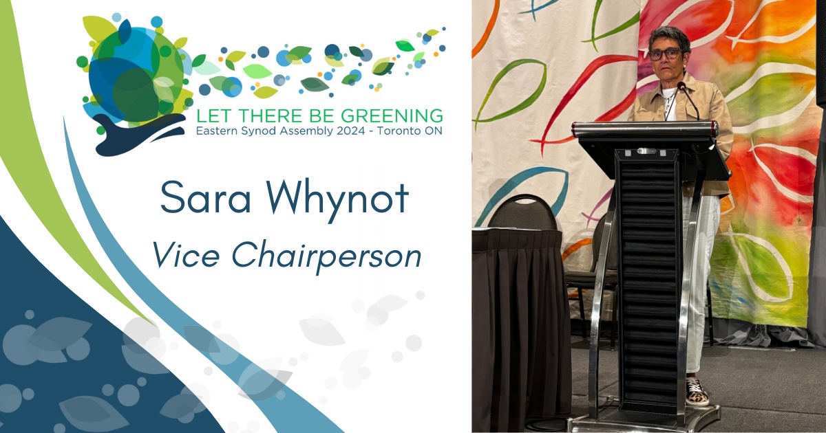 Sara is the first officer of the Eastern Synod to be elected from the Atlantic Ministry Area. Sara is a member of St. John’s Lutheran Church, Mahone Bay NS.