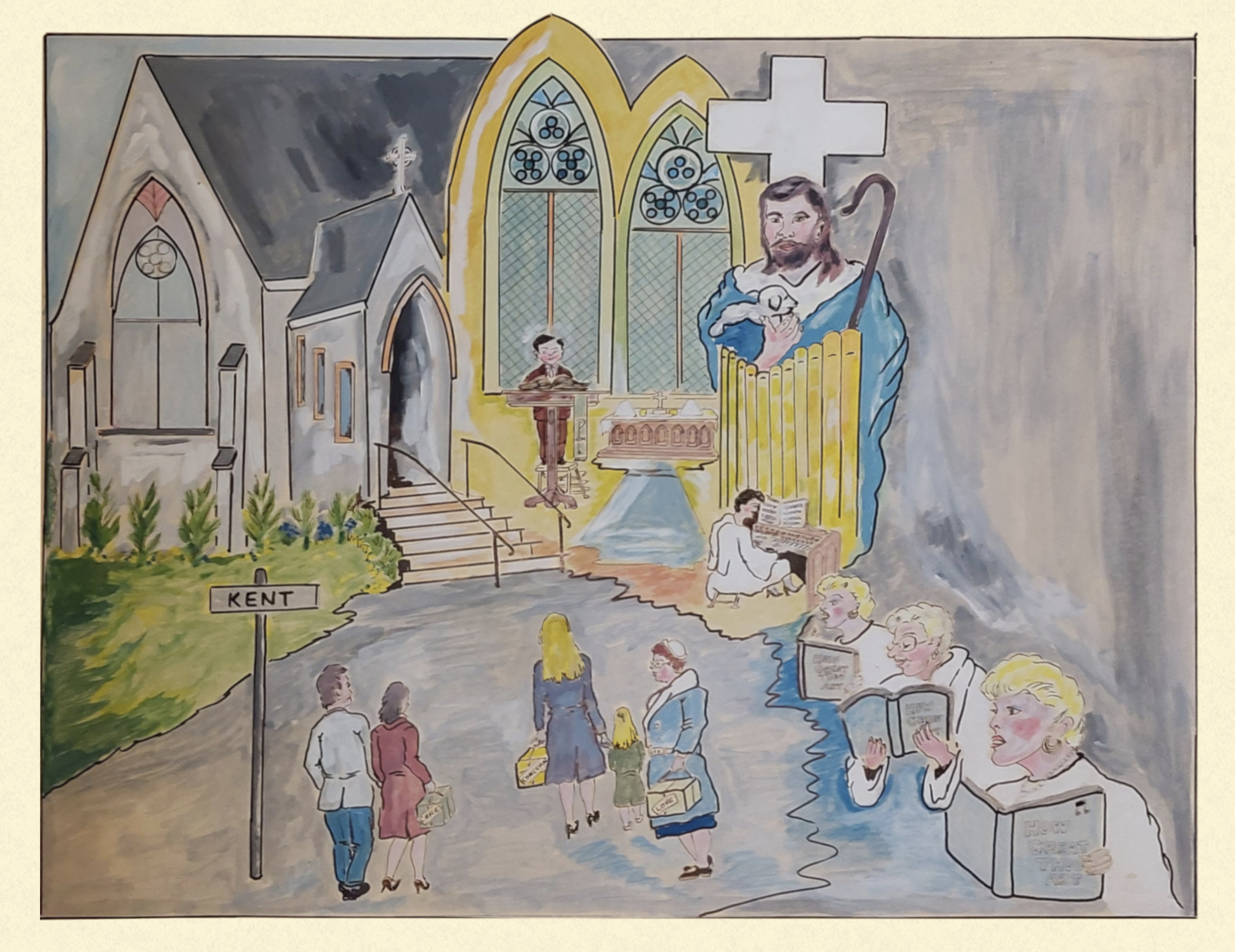 While cleaning out the basement of our church recently, this water colour painting was found among the clutter. It measures about 40 inches by 33 inches. There is nothing on it to identify the artist or when it was painted. If you have any ideas about it’s origin, please leave a comment in the comment box below. Thank you.