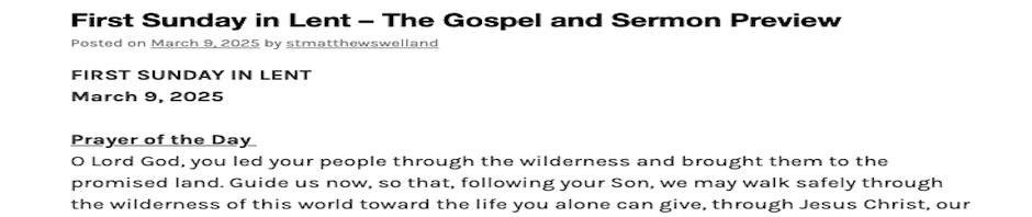O Lord God, you led your people through the wilderness and brought them to the promised land. Guide us now, so that, following your Son, we may walk safely through the wilderness of this world toward the life you alone can give, through Jesus Christ, our Saviour and Lord, who lives and reigns with you and the Holy Spirit, one God, now and forever. Amen.