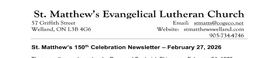 St. Matthew’s 150th Newsletter Click HERE