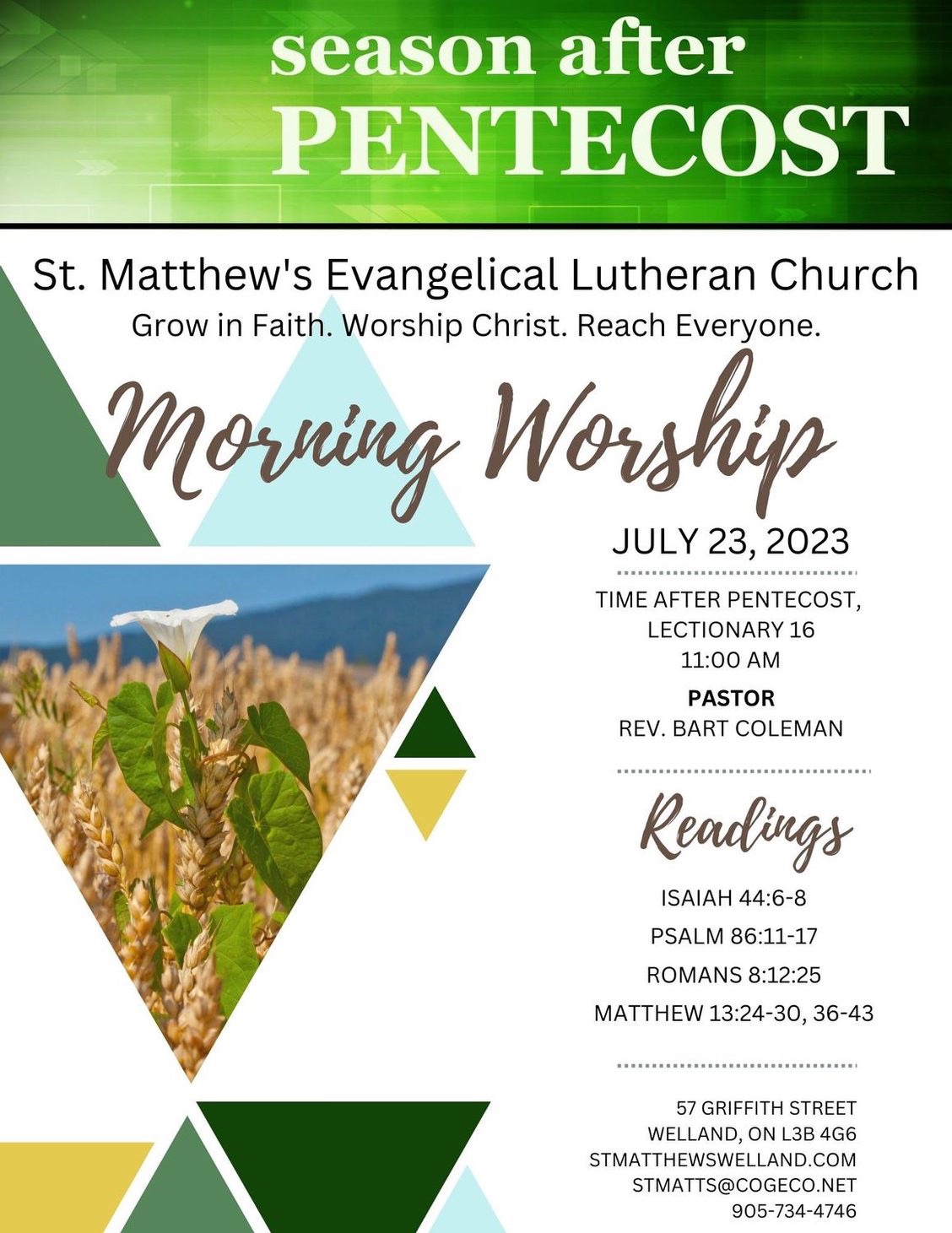 In response to God's love, St. Matthew's is a faith community welcoming all to grow in faith, to worship Christ and to reach out to everyone