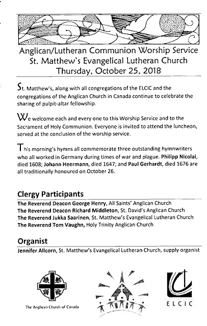 Anglican/Lutheran Communion Service and Oktoberfest Lunch – October 25th