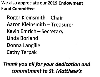 In response to God's love, St. Matthew's is a faith community welcoming all to grow in faith, to worship Christ and to reach out to everyone