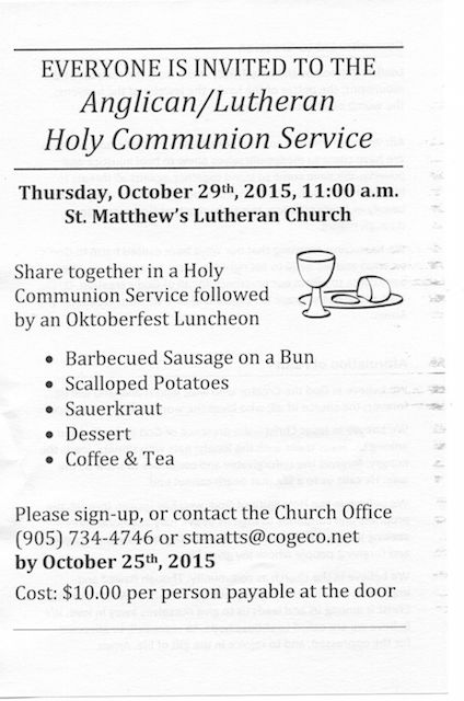 ← October 29th Anglican/Lutheran Holy Communion Service – Photos