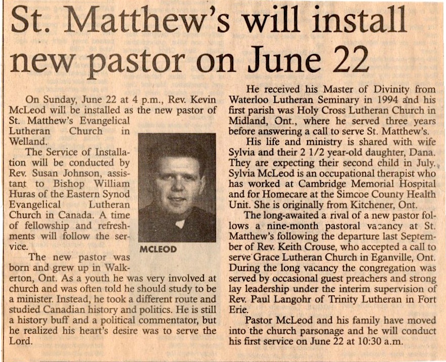 The Rev. Kevin McLeod 1997-2002 (photo, 1997 news article)
