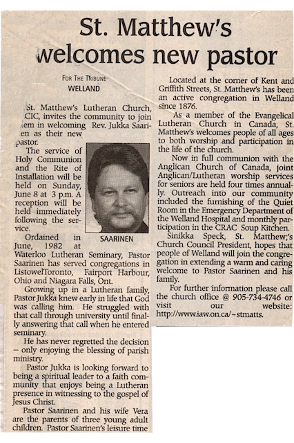 The Rev. Jukka Saarinen 2003- (September) 2021 (photo, 2003 news article)