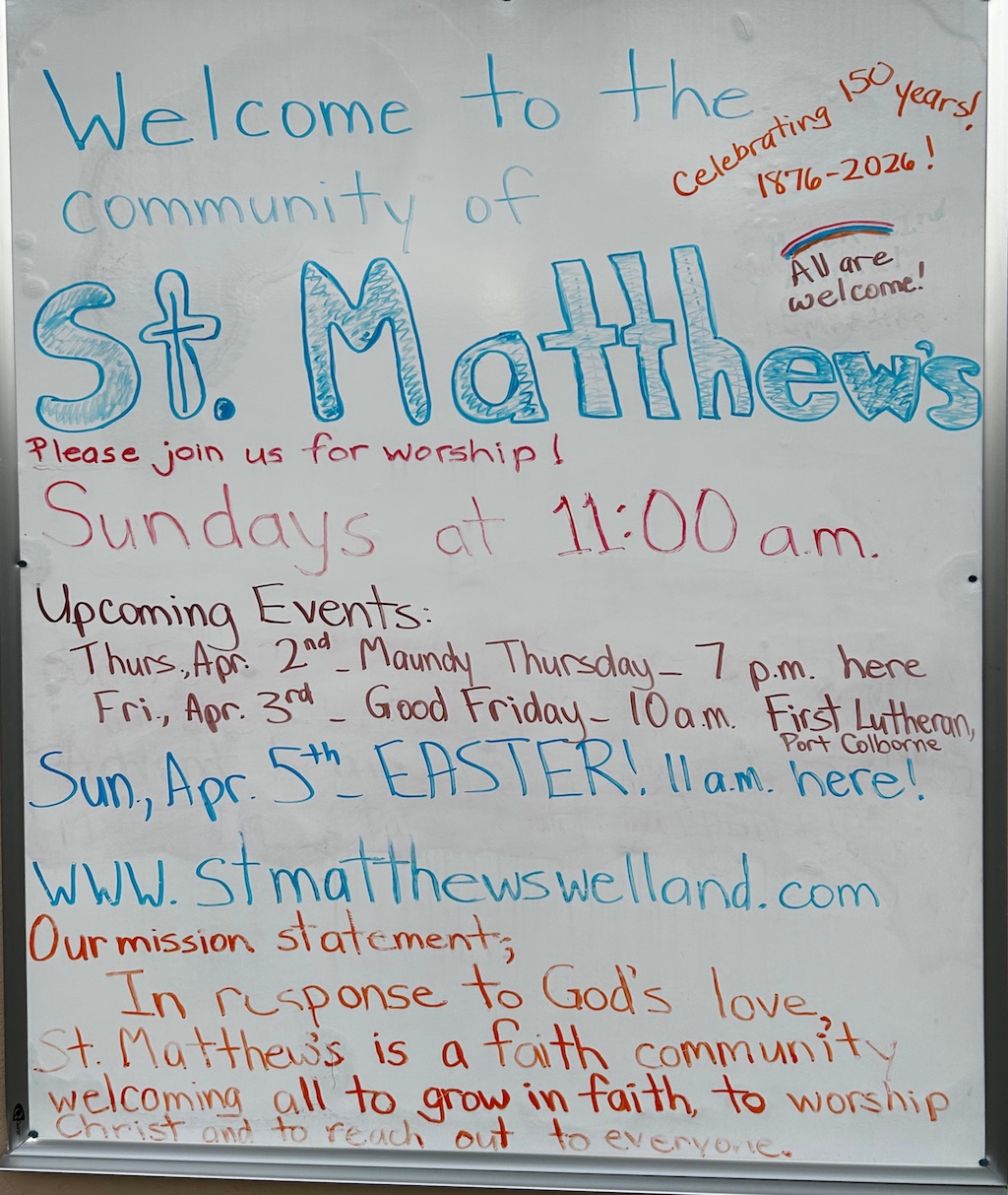 Love it Rona. Thanks On Sat, Mar 7, 2026, 11:20 a.m. St. Matthew's Evangelical Lutheran Church,