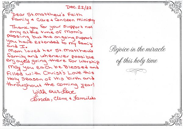 In response to God's love, St. Matthew's is a faith community welcoming all to grow in faith, to worship Christ and to reach out to everyone