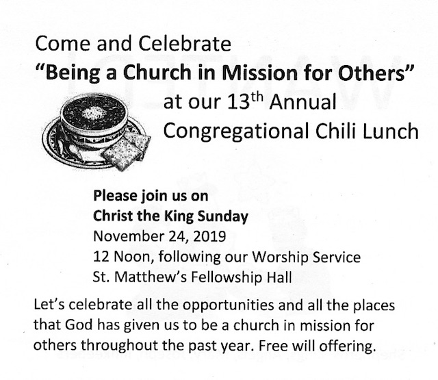 In response to God's love, St. Matthew's is a faith community welcoming all to grow in faith, to worship Christ and to reach out to everyone